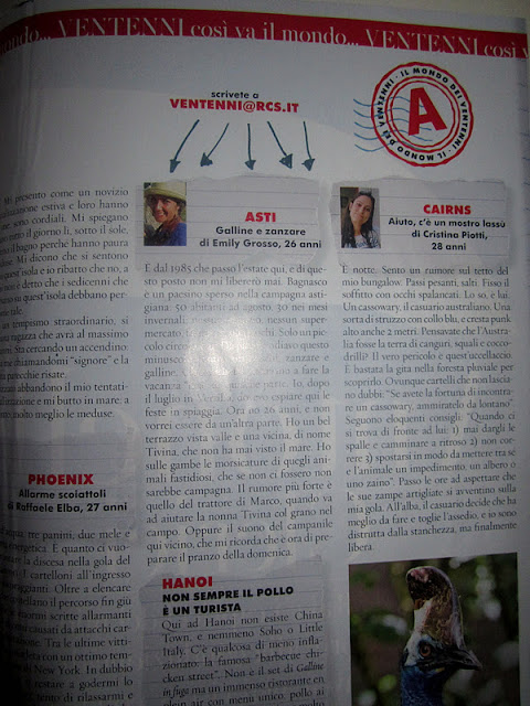 The second page is in my favorite fashion magazine, A. I'm addicted and fan of this section before having found, one hot day of august, my story published on "Ventenni" section. Perfect articles for a perfect magazine: always update, never boring or made of unpolitical correct articles, cool ideas and against young people who reach a job thanks to recommendations. This section, Ventenni, is made of young people stories about their life in little or big country all over the world, and for me, it's a good way to be in another place, even if with my mind, ABROAD!